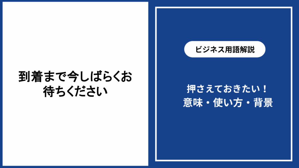 「到着まで今しばらくお待ちください」は、ビジネスや日常生活でよく使われる丁寧なフレーズです。 今回はこの言葉の意味や使い方、類語との違い、正しい敬語表現につい... -