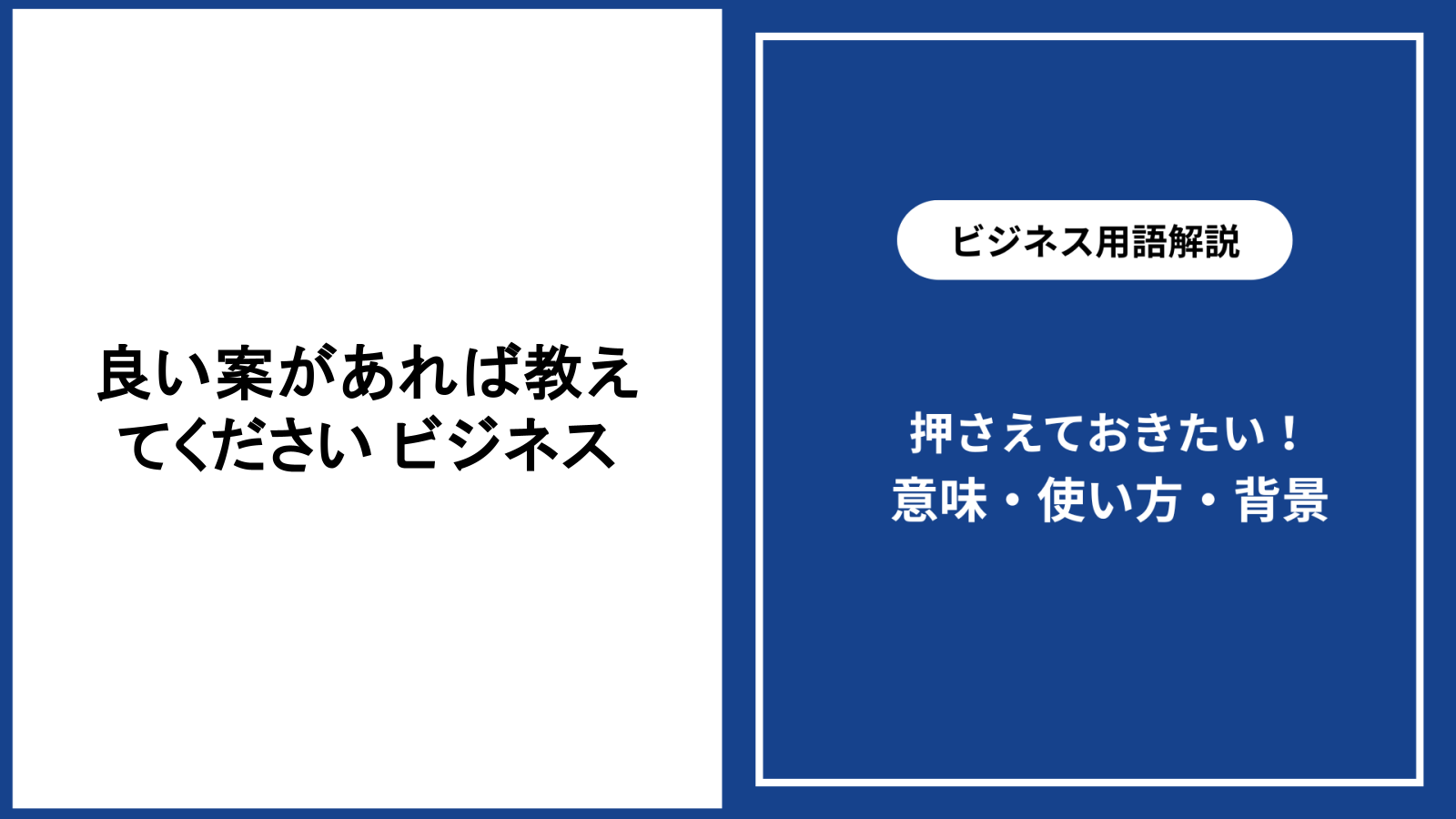 ビジネスシーンで「良い案があれば教えてください」というフレーズは頻繁に使われます。