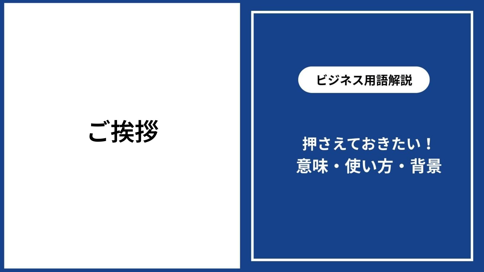 本記事では「ご挨拶」の意味や使い方、ビジネスシーンでのポイントなどをわかりやすく解説します。