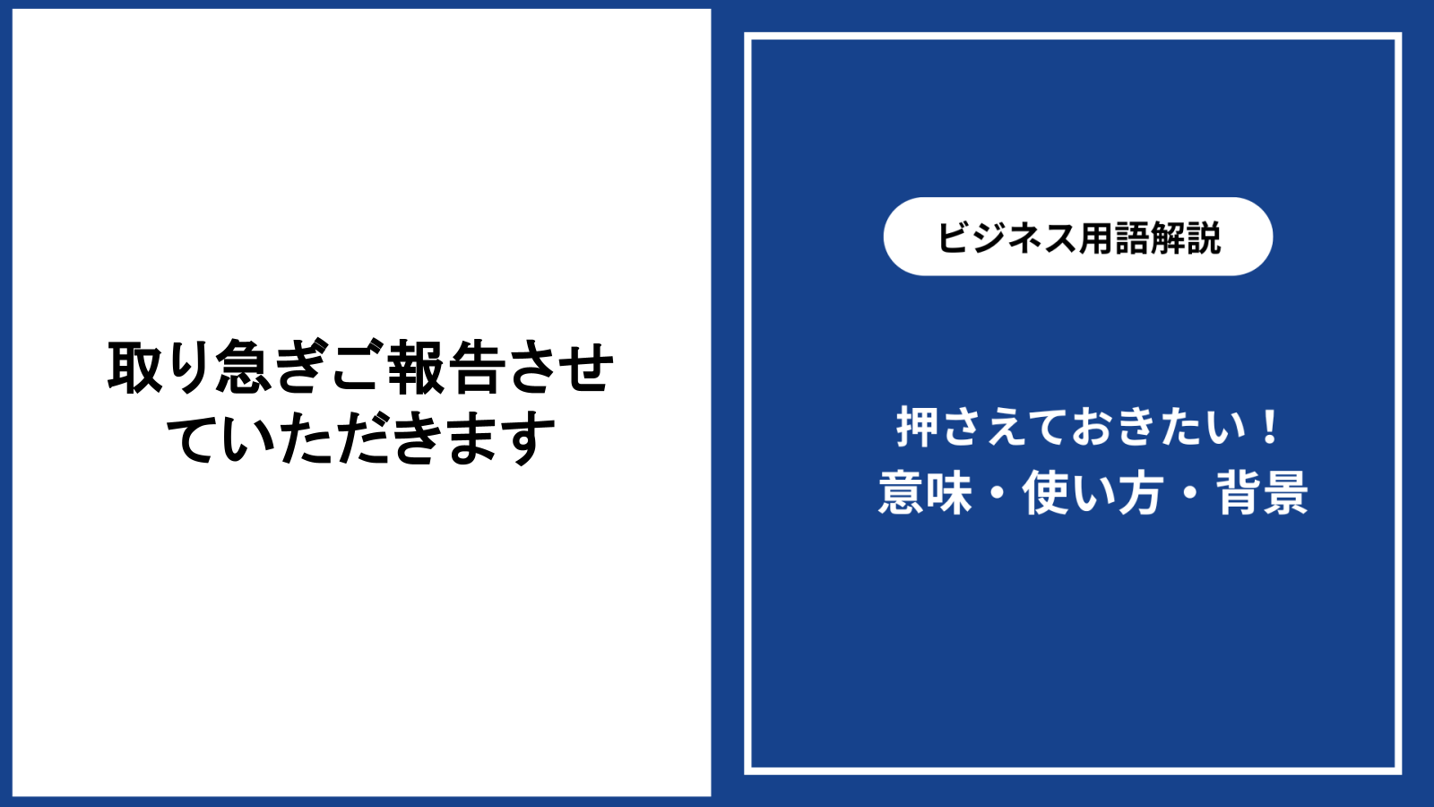 「取り急ぎご報告させていただきます」とは、急ぎ連絡が必要な内容を、まず最初に簡潔に伝える際の定型文です。