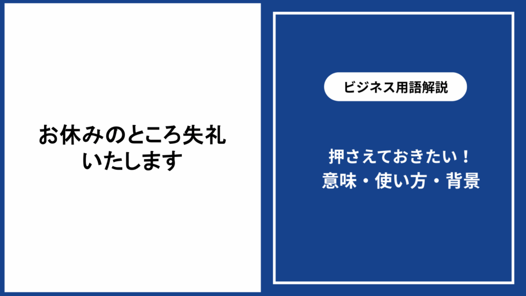 「お休みのところ失礼いたします」は、ビジネスや日常のさまざまなシーンで使われる丁寧な言い回しです。 今回はこのフレーズの正しい意味や使い方、例文、さらにはビジ... -