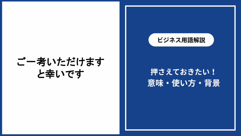 「ご一考いただけますと幸いです」は、ビジネスメールや手紙で頻繁に用いられる丁寧な表現です。 本記事では、この言葉の意味や正しい使い方、類似表現との違い、注意点... -
