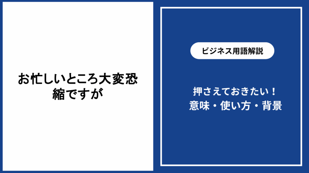 ビジネスシーンでよく見かける「お忙しいところ大変恐縮ですが」というフレーズ。 この言葉は、相手の立場や都合を思いやりつつ、何か依頼やお願いをしたいときに使われ... -