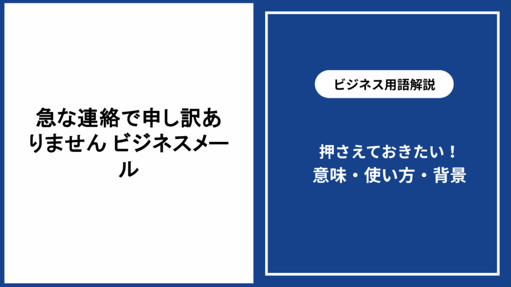 ビジネスメールを送る際、「急な連絡で申し訳ありません」というフレーズを使う場面は多くあります。相手に配慮した丁寧な印象を与えるためのポイントや、正しい使い方... -