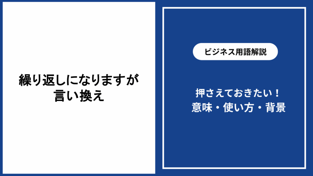 ビジネスメールや会話でよく使われる「繰り返しになりますが」。 しかし、同じ表現ばかり使ってしまうと、単調になりがちです。 ここでは「繰り返しになりますが」の意... -