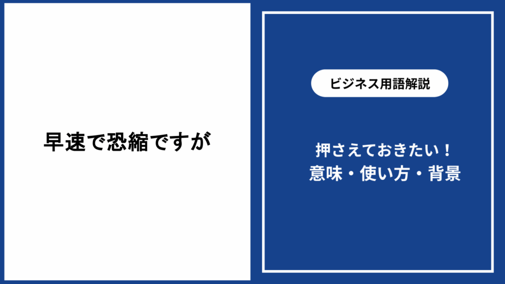 「早速で恐縮ですが」という表現は、ビジネスシーンやメールでよく使われる日本語のフレーズです。 この記事では、その正しい意味や使い方、注意点、よくある類語や言い...
