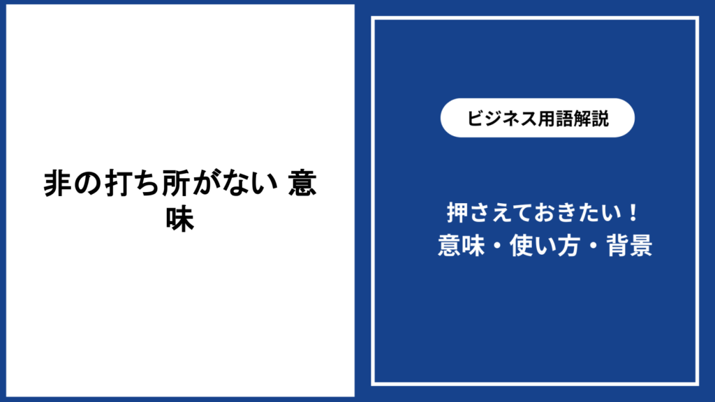 「非の打ち所がない 意味」を知ることで、より適切にこの表現を使いこなせるようになります。 ビジネスシーンや日常会話でも評価や褒め言葉として頻繁に登場するこの言... -