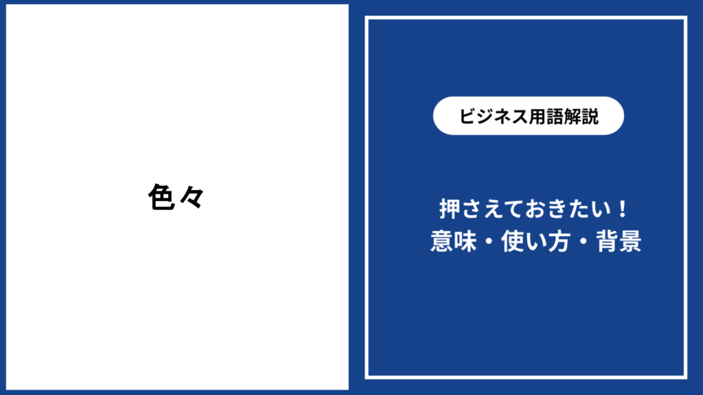 「色々」は日常会話やビジネスシーンでもよく使われる言葉です。 この記事では、「色々」の意味や使い方、類語との違いについて詳しく解説します。 知っておくと便利な... -
