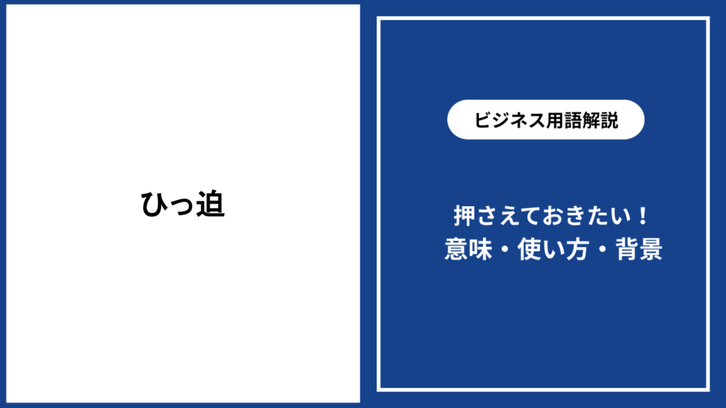 ひっ迫という言葉は、ニュースやビジネスの現場でよく目にしますが、正しい意味や使い方を知らずに使っている方も多いのではないでしょうか。 この記事では、ひっ迫の本... -