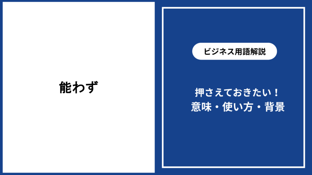 「能わず」という言葉は、日常会話やビジネスシーンではあまり聞き慣れないものの、文章表現やフォーマルな場面で使われることがあります。 本記事では、「能わず」の正... -