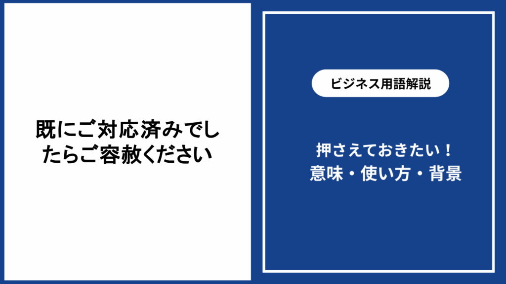 ビジネスメールやチャットでよく見かける「既にご対応済みでしたらご容赦ください」ですが、その正しい意味や使い方をご存じでしょうか。 本記事では、このフレーズの意... -