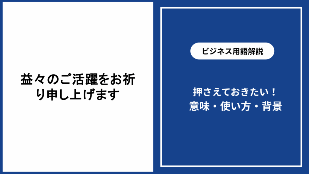 ビジネスシーンやフォーマルな場面でよく見かける「益々のご活躍をお祈り申し上げます」。 このフレーズの意味や正しい使い方、メールや手紙での実用例などを丁寧に解説... -