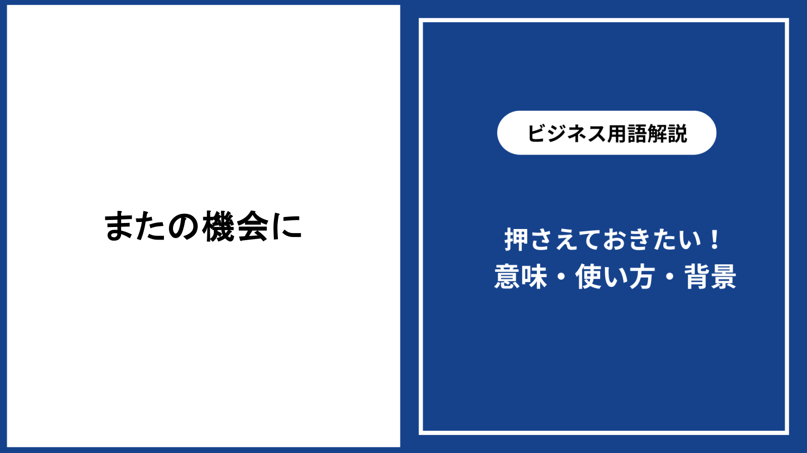 ここでは、「またの機会に」という言葉がどのような意味を持つのか、そしてその背景についてご説明します。