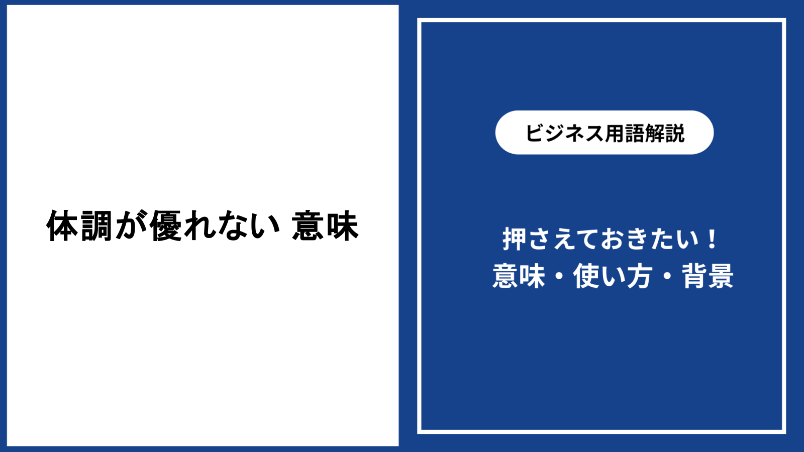 この記事を読めば、「体調が優れない」の意味や使い方がすべて分かるようになります。