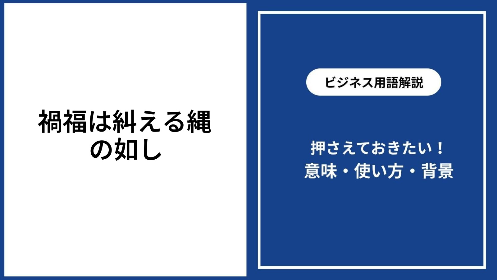 ビジネスの現場でも、「禍福は糾える縄の如し」という言葉はよく使われます。