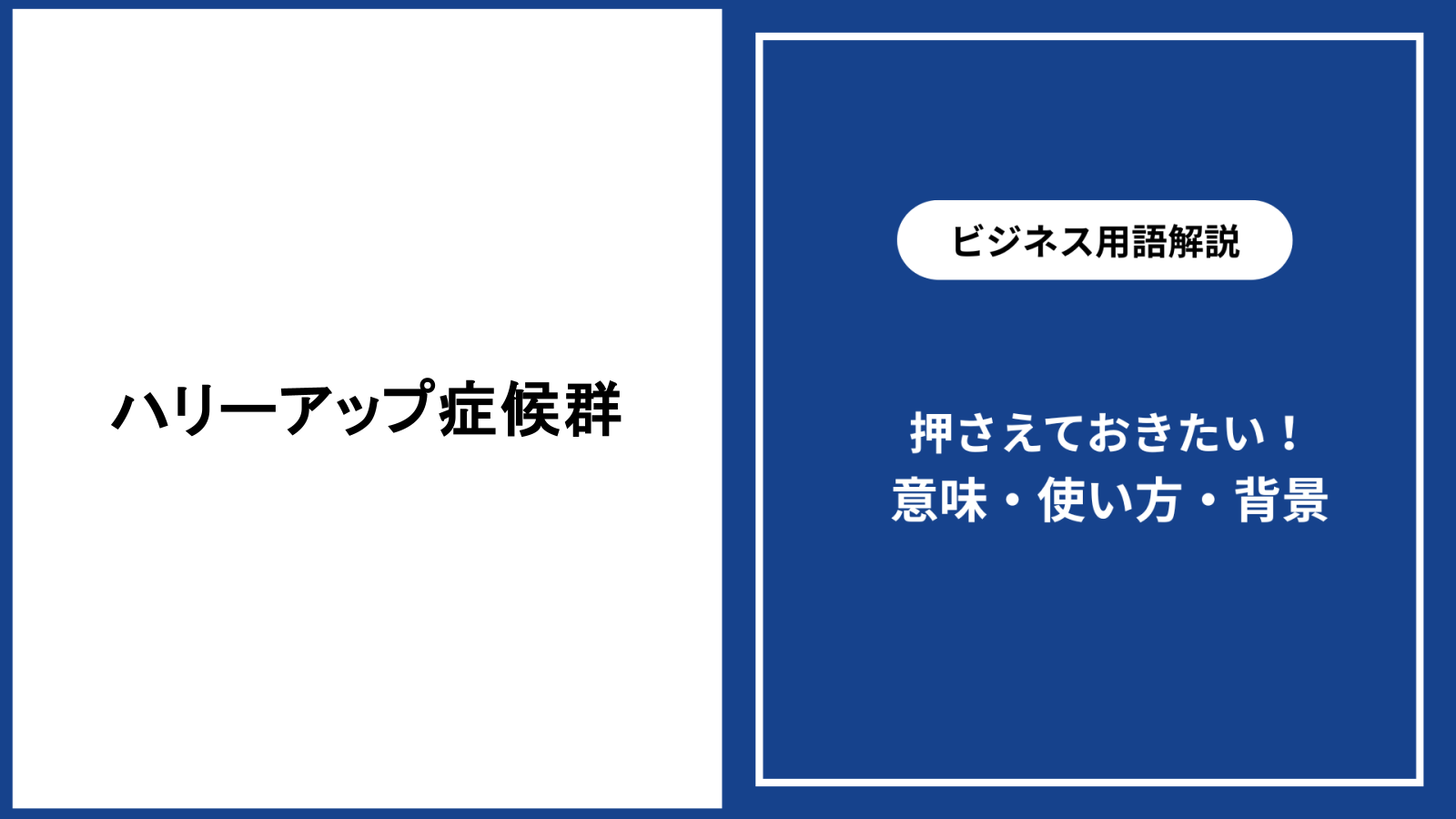 この記事では、ハリーアップ症候群の意味や背景、ビジネスシーンでの使い方や注意点を分かりやすく解説します。