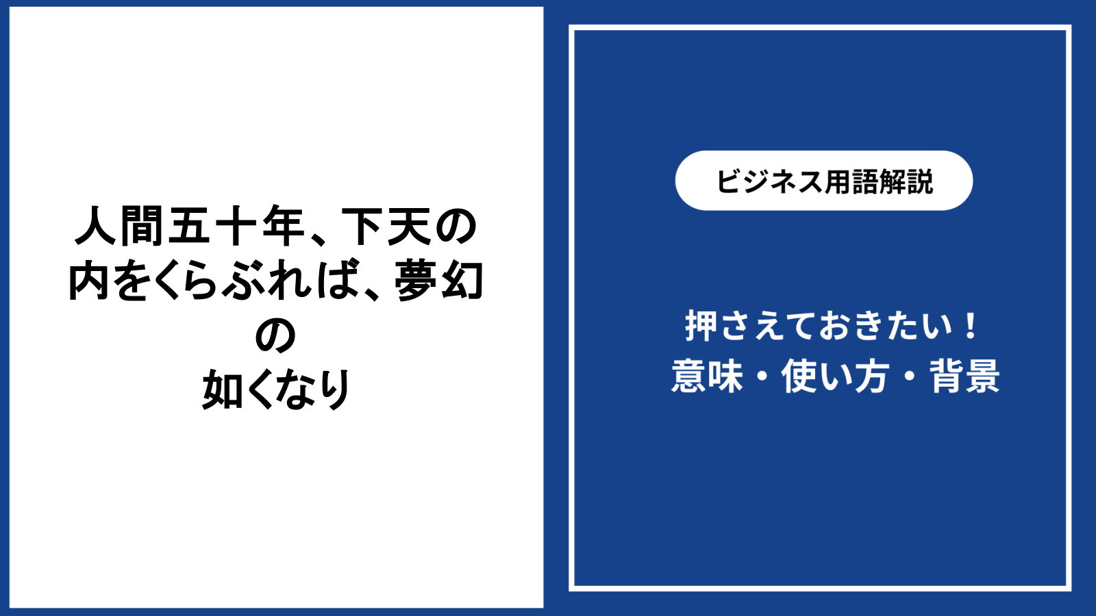 会議やプレゼンの冒頭で、「人間五十年、下天の内をくらぶれば、夢幻の如くなりと言いますが、私たちも限られた時間の中で最善を尽くしましょう」といった使い方がされます。