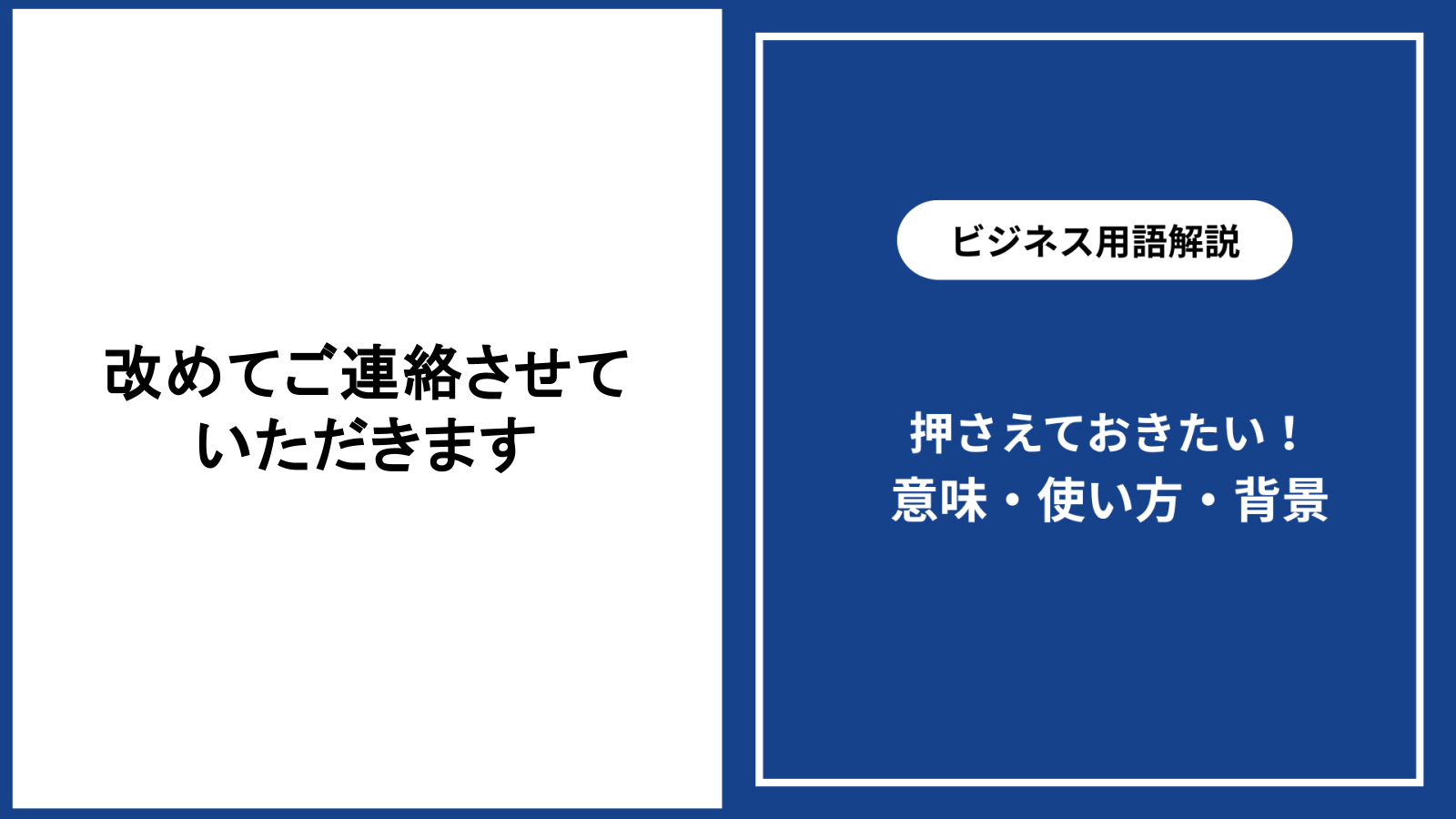 「改めてご連絡させていただきます」は、ビジネスシーンでとても重宝される丁寧な表現です。
