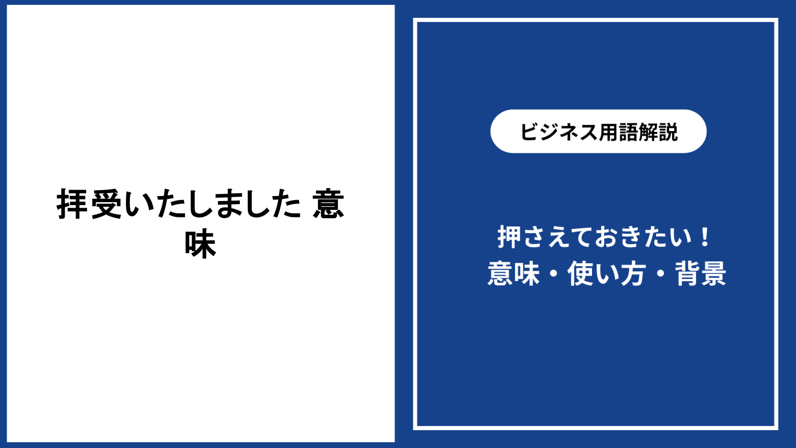 この記事では、「拝受いたしました」の意味や読み方、例文、類語、間違いやすいポイントまで詳しくご説明します。