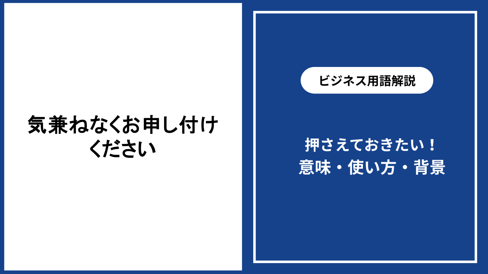 「気兼ねなくお申し付けください」は、ビジネスシーンや接客・サービスで大変便利な敬語表現です。
