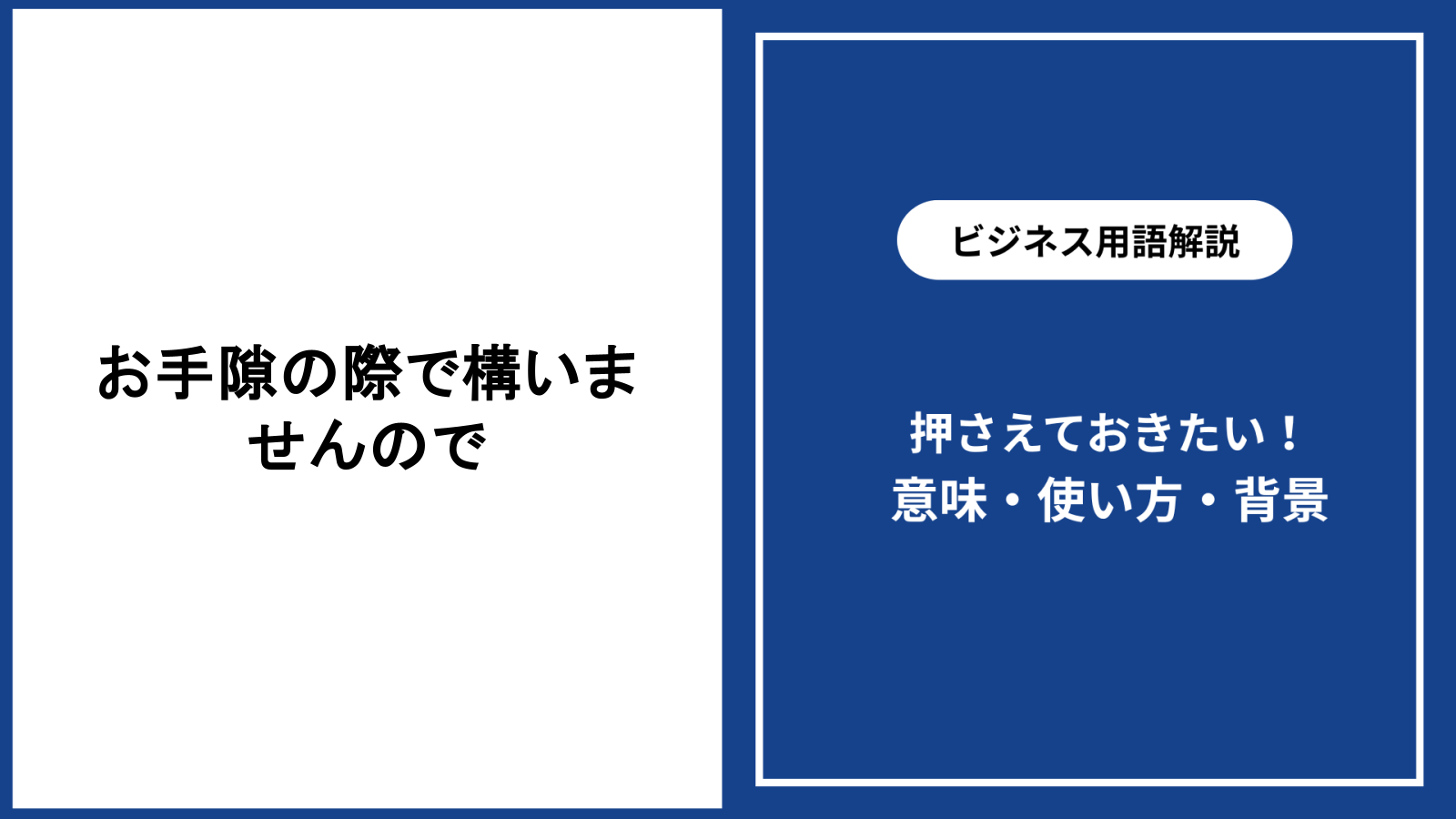 「お手隙の際で構いませんので」というフレーズは、ビジネスシーンを中心に幅広く使われる丁寧な言い回しです。