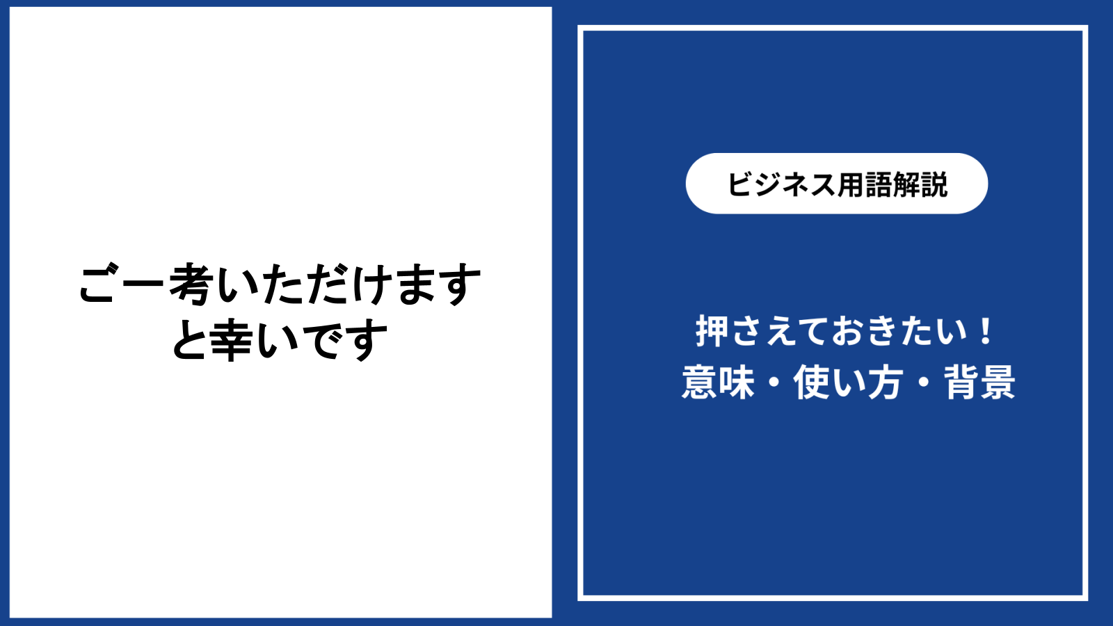 「ご一考いただけますと幸いです」は、ビジネスシーンで相手への敬意や配慮を示せる丁寧な表現です。