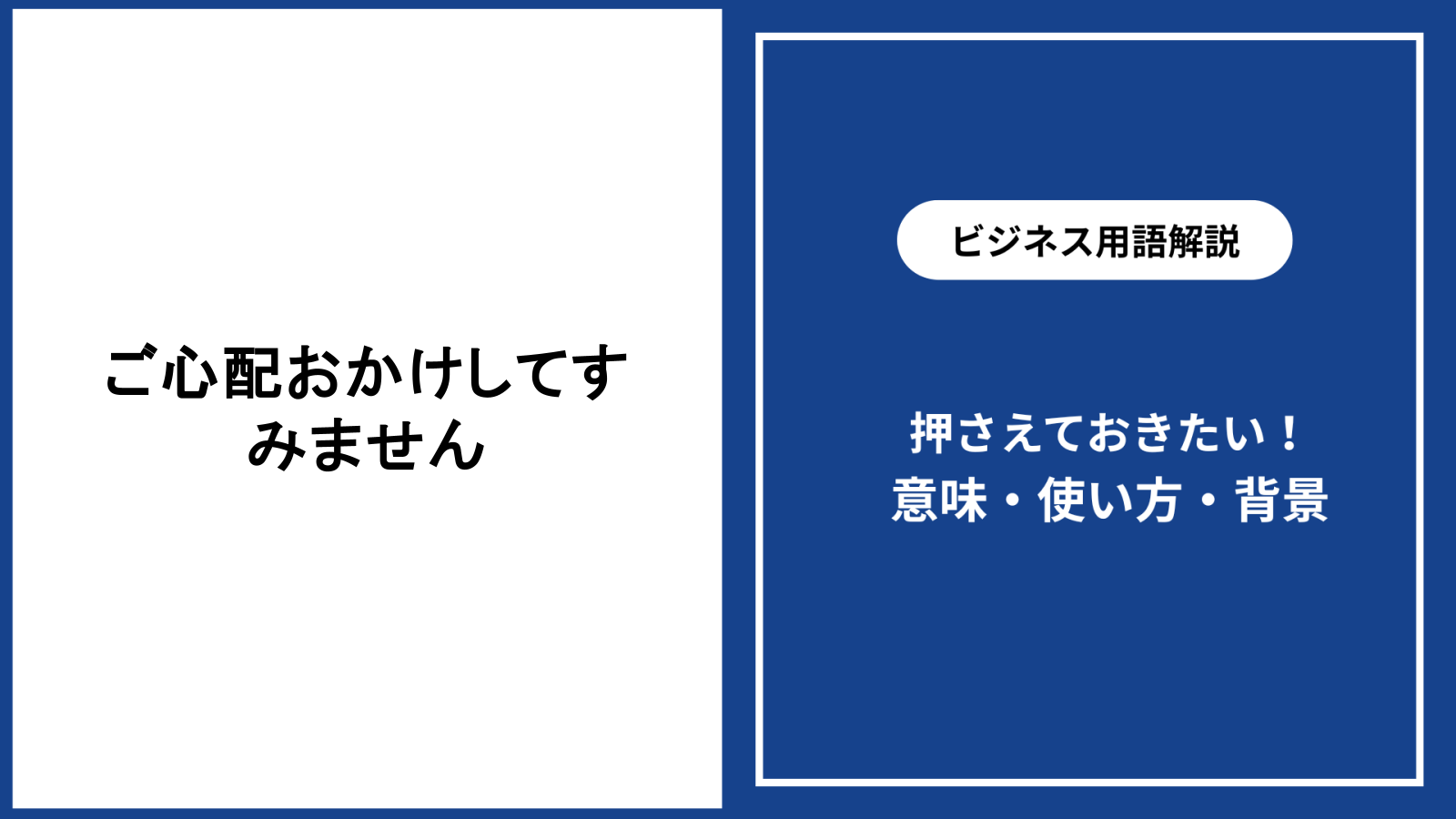 「ご心配おかけしてすみません」は、「心配」と「おかけする」(=迷惑や負担をかける)に、謝罪の「すみません」を組み合わせた表現です。