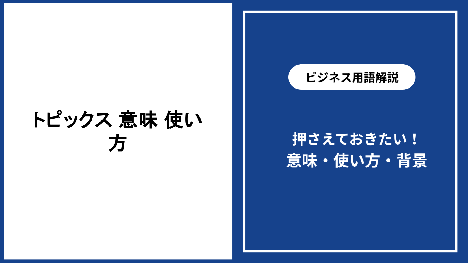 この記事では、トピックスの意味や使い方、類語との違い、ビジネスシーンでの活用ポイントなどを分かりやすく解説します。