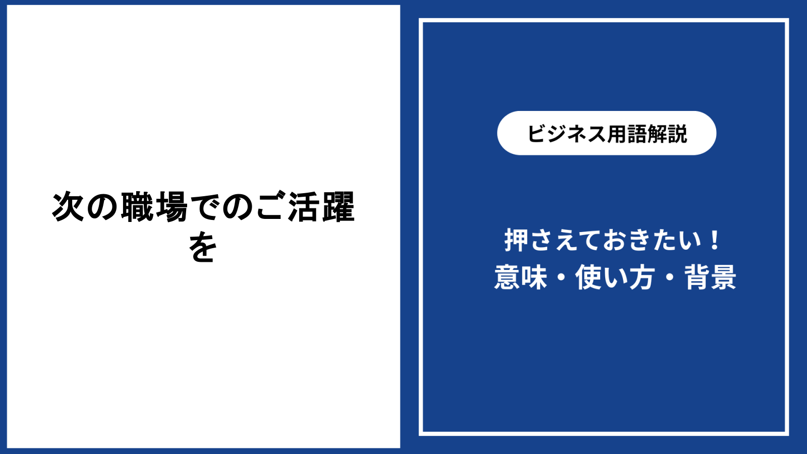 「次の職場でのご活躍を」は、主に今まで一緒に働いていた方が転職・異動・退職する際に用いられる、相手の今後の成功を心から願う表現です。