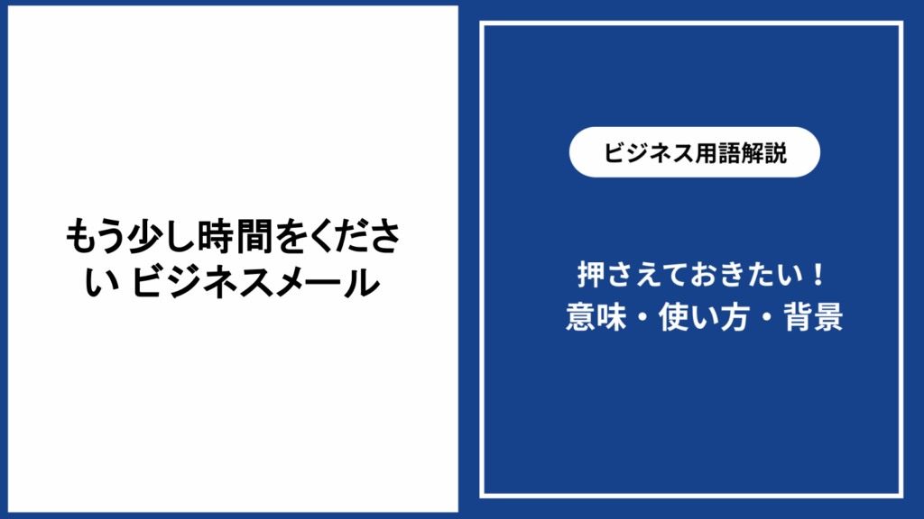 ビジネスメールで「もう少し時間をください」と伝える場面は意外と多いものです。 しかし、伝え方を間違えると相手に失礼な印象を与えてしまうことも。 このページでは...