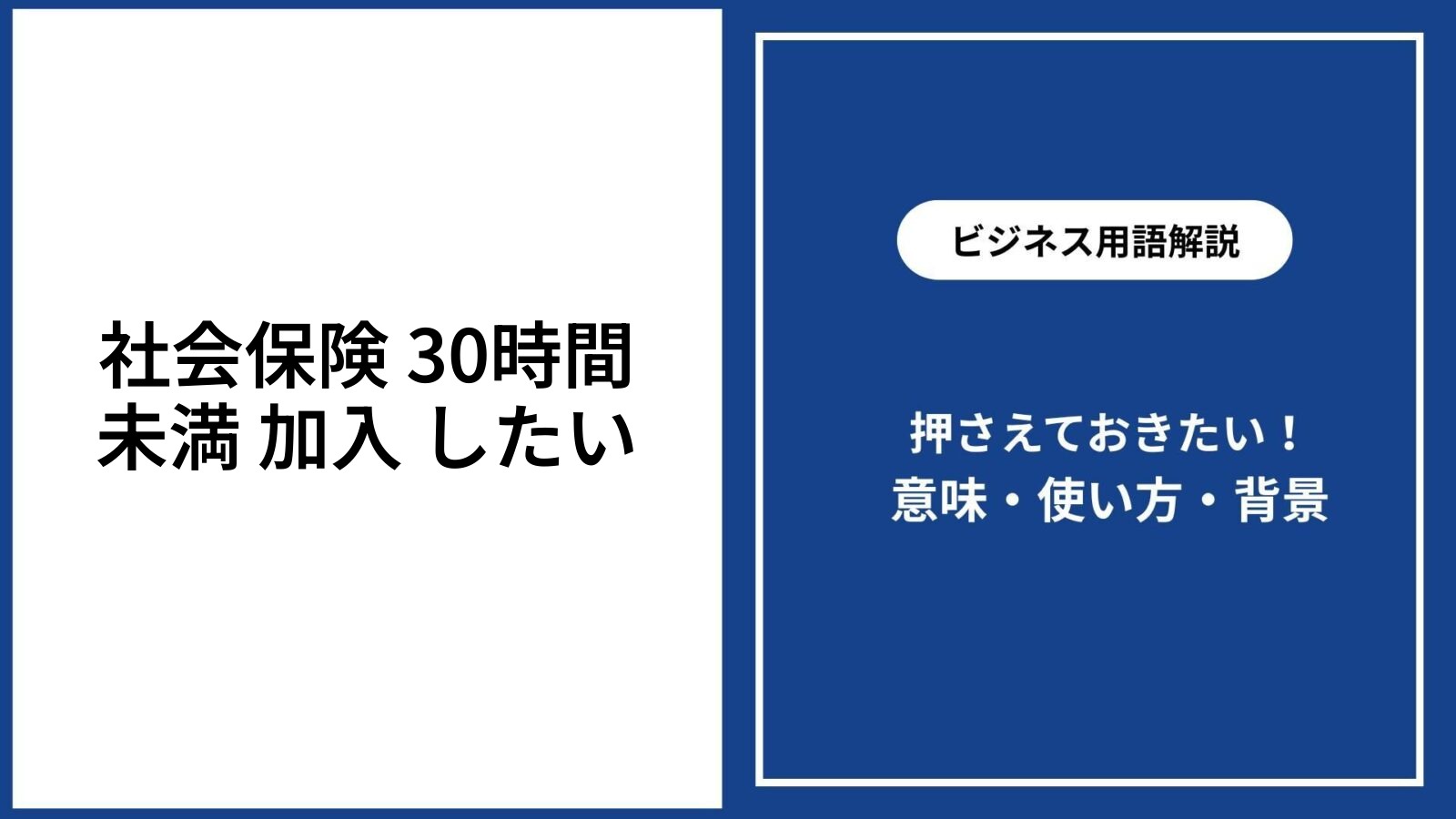「社会保険」というキーワードは、パートやアルバイトなどで週30時間未満の勤務をしている方が、社会保険に加入したい場合に気になるポイントです。 本記事では、社会保...