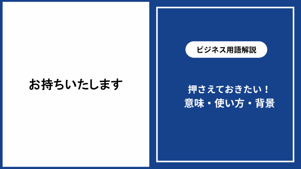「お持ちいたします」は、日常やビジネスの現場でよく耳にする丁寧な言葉です。 この記事では、「お持ちいたします」の意味や正しい使い方、よくある誤用や例文まで、誰...