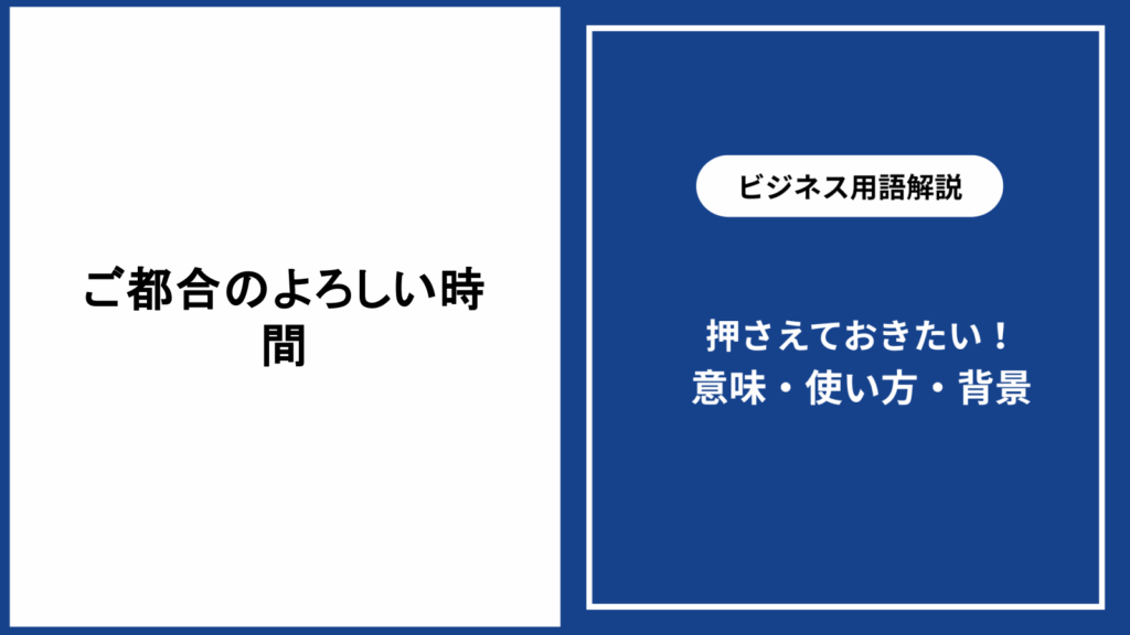 ビジネスシーンや日常生活でよく使われる「ご都合のよろしい時間」は、相手に配慮した丁寧な言い回しです。 今回は、その正しい意味や使い方、間違いやすいポイント、類...