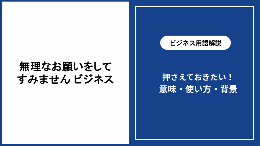 ビジネスシーンでよく使われる「無理なお願いをしてすみません」というフレーズ。 この言葉にはどのような意味や背景があるのでしょうか。 また、どのような場面で使う...