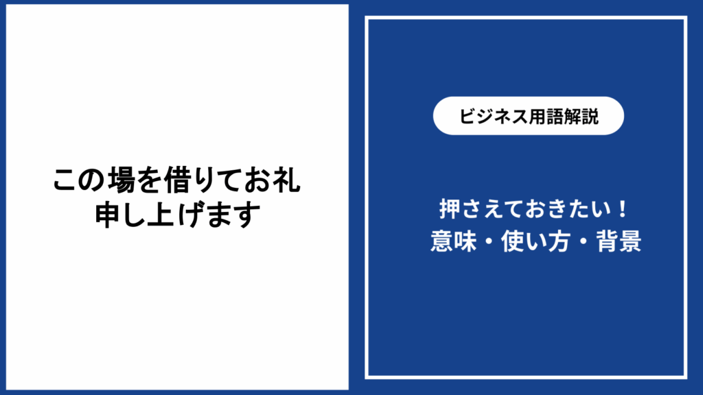 ビジネスやフォーマルな場面でよく耳にする「この場を借りてお礼申し上げます」。 どんなシーンで使うのが正しいのか、意味やニュアンス、例文や類語も詳しくご紹介しま... -