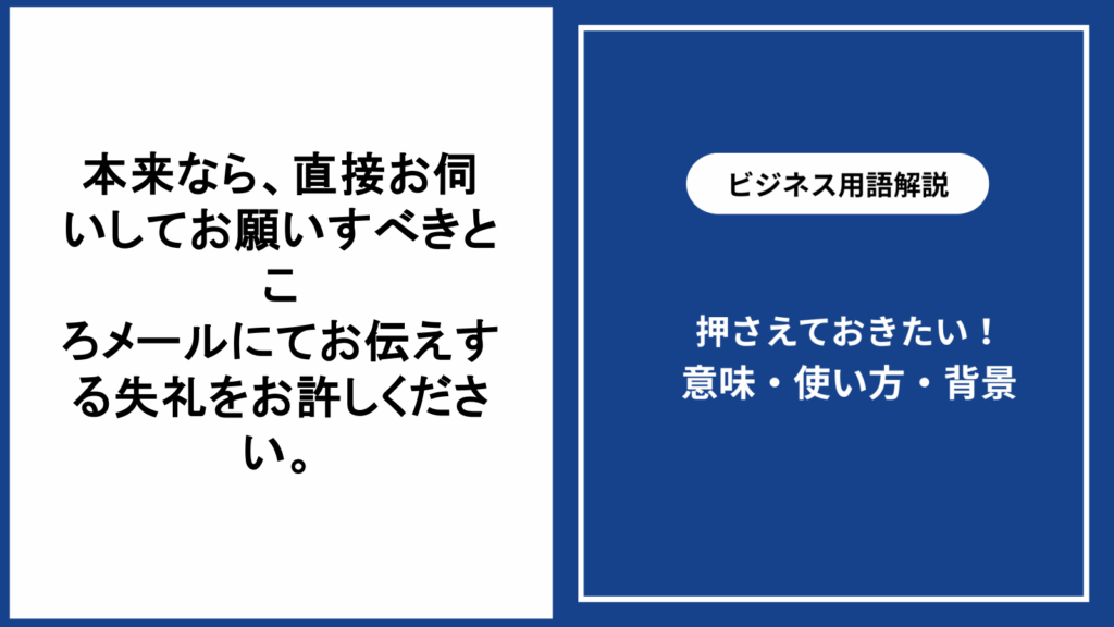 ビジネスメールやフォーマルなやりとりでよく目にする「本来なら、直接お伺いしてお願いすべきところメールにてお伝えする失礼をお許しください。」という表現。 このフ...