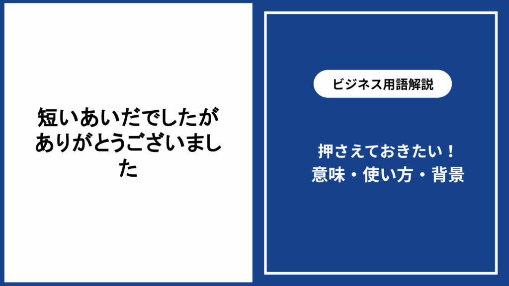 社会人や学生生活、アルバイトなど、多くの場面で「短いあいだでしたがありがとうございました」というフレーズは使われます。 この言葉は、短期間だけ関わった相手に感...