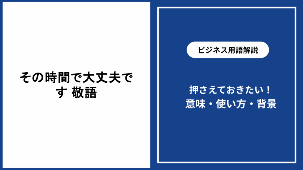 「その時間で大丈夫です」はビジネスシーンや日常会話でよく使われるフレーズですが、正しい敬語や丁寧な表現を知っておくとより信頼感が増します。この記事では、「そ...