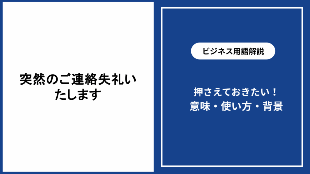 「突然のご連絡失礼いたします」は、ビジネスシーンでよく使われる丁寧な挨拶表現のひとつです。 初めての相手や、久しぶりに連絡する場合などに用いられ、社会人として... -